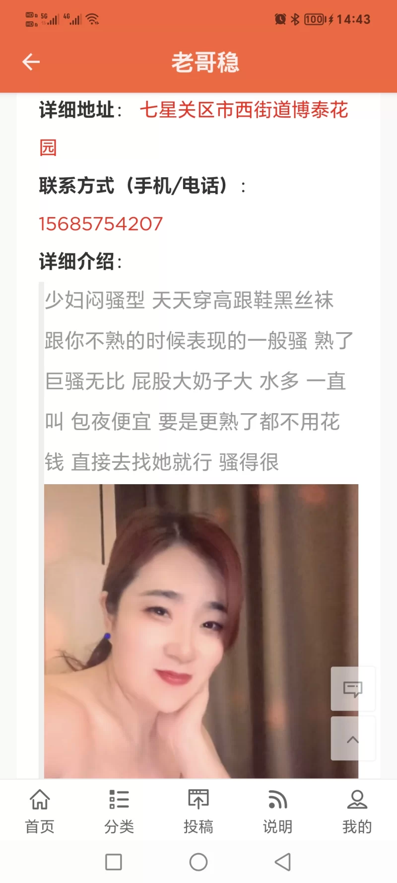 信息分类:骗子曝光 地区:贵州省-毕节 信息来源:老哥稳 年龄:30 颜值身材:没联系上 服务项目:没联系上 价格:没联系上 环境设备:没联系上 详细地址: (管理提示:经用户举报,此信息有诈骗行为,请勿被骗!) 联系方式(手机/电话): (管理提示:经用户举报,此信息有诈骗行为,请勿被骗!) 详细介绍: 微信被限制加不上,电话男的接的,喜欢熟女,有没有这个的联系方式?贵阳熟女有推荐吗? 骗子曝光