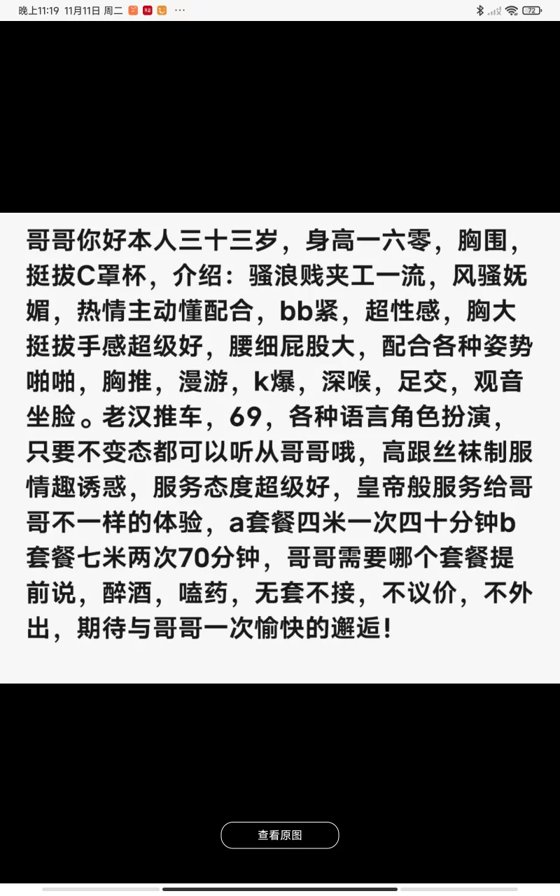 威客管理提示:要求付定金 保证金的,总之提前要钱的都是骗子 朋友介绍,联系了一下,看了照片,果断忍不住了,到指定地点遥控上门,进门就看见穿着半露的衣服,凶器大的摇摇欲坠,看的好像马上就一把抓上去,进门洗了个澡,妹子不陪洗澡,然后要求妹子穿上丝袜,开始做全套,这凶给胸推,实在太爽,差点就交代了,诱惑至极之后开始正戏,还挺嫩的,弄几下妹子就好多水,可谓鲜嫩,边进攻,边抓着大奶子,吸舔,看妹子也很有感觉,大战三百回合后交代了,妹子可以上门包夜,上门包夜费用是1800,正常包夜1500,下次包夜爽她