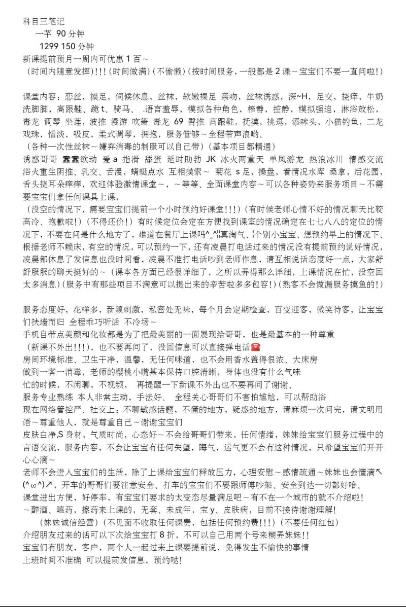 服务项目: 陪浴、胸推、臀推、阴推、口爆、制服诱惑、丝袜高跟、莞式调情、爱爱,冰火两重天,69式